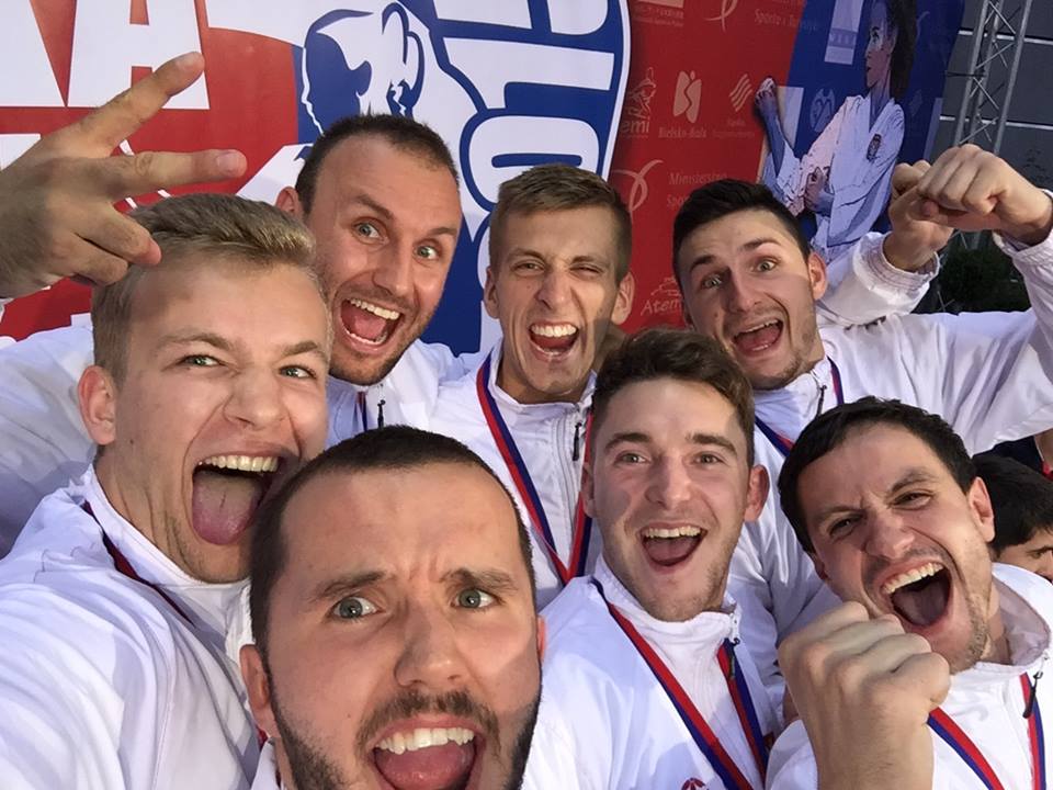 Mistrzem Świata został również Kamil Warda w kumite drużynowym seniorów. Kamil współtworzył świetny zespół wraz z Piotrem Szumiło /Bodaikan Szczecin/, Michałem Bąbosem, Szymonem Ołowskim /Kaisho Białystok/, Patrykiem Urbanem /Bushido Bydgoszcz/, Szymonem Grzywaczem i Maćkiem Boguszewskim / obydwoje Bodaikan Szczecin/. Widać było zgraną “pakę” która wie po co przyjechała na Mistrzostwa. Panowie stoczyli niezwykle emocjonujący zwycięski finałowy pojedynek z Anglią. Brawo Polska !!! Brawo Kamil. Warto dodać że jest to pierwszy w historii tytuł Mistrzów Świata w kategorii senior !!!