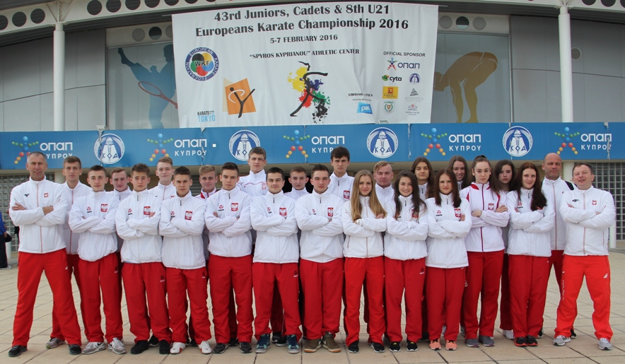 W dniach 3-7 lutego 2016 roku braliśmy udział w Mistrzostwach Europy Kadetów, Juniorów i U21 w Karate WKF które odbyły się w Limassol na Cyprze. Nasz Klub reprezentowała Dorota Banaszczyk i Cezary Pełka. Oglądaliśmy dobre i bardzo dobre walki naszych zawodników. Czarek w dobrym stylu pokonał w pierwszej walce zawodnika z Niemiec, w drugiej nieznacznie uległ zawodnikowi z Turcji /ale po dobrej walce/. Dorota natomiast pokonała w pierwszej rundzie przez wskazanie 5 do 0 zawodniczkę z Belgii. Potem zawodniczkę z Anglii 3 do 0. Niestety w walce ćwierćfinałowej uległa 1 do 0 Hiszpance. Szkoda bo bardzo blisko był upragniony półfinał. Pracujemy dalej bo lubimy tą pracę :)))