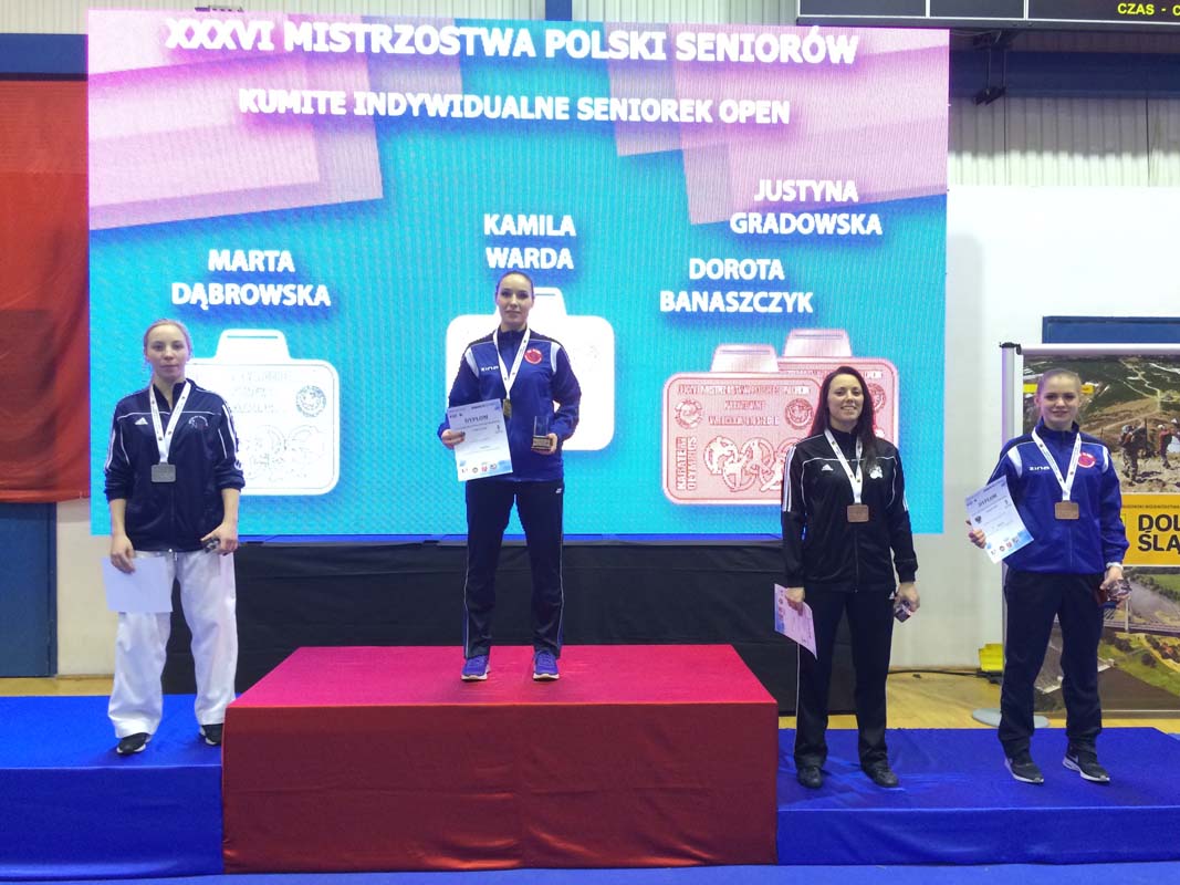 Kamila Warda potwierdza swoje nieprzeciętne umiejętności i po raz kolejny wraca w podwójnej koronie. Kamila zwyciężyła w kategorii – 68 kg. oraz w kategorii Open. Szczególny smak ma kategoria Open w której Kamila kolejno walczyła z wszystkimi najlepszymi polskimi zawodniczkami zwyciężając po drodze Justynę Paczkowską /Bodaikan Szczecin/, Justynę Gradowską /Kumade Łódź/ i w finale Martę Dąbrowską /Budokan Wrocław/. Trzeci złoty medal i Mistrzostwo Polski wywalczyła Dorota Banaszczyk w kategorii – 55 kg. Ten medal również bardzo cieszy, jest to pierwsze złoto naszej młodej zawodniczki w kategorii senior. Dorota równie dobrze powalczyła w kategorii Open zdobywając cenny brązowy medal.