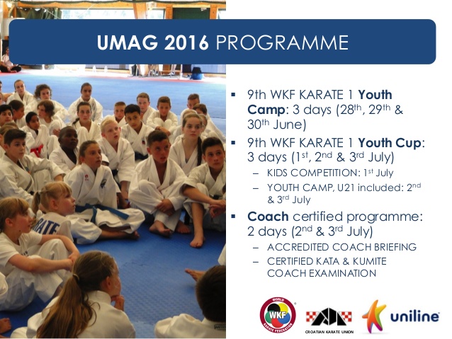 Juz za kilka dni zawodnicy Olimpu jadą na jedno z najlepszych zgrupowań Karate na Świecie, jedyne organizowane przez World Karate Federation dla dzieci i młodzieży. To coroczne zgrupowanie odbędzie się w Umag /Chorwacja/ w dniach 27.06 – 3.07.2016. Zajęcia prowadzone będą przez gwiazdy światowego karate z Aghayevem na czele. Na koniec zgrupowania odbędzie się jedyny oficjalny Puchar Świata – Karate 1 WKF Youth Cup. Na dzień 3 czerwca zgłoszonych jest 610 zawodników z 49 państw.