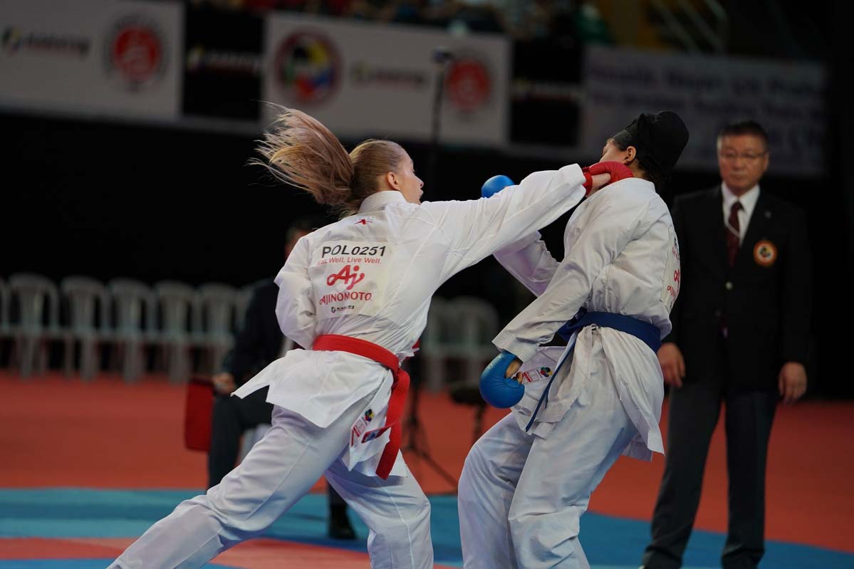 W tym doborowym towarzystwie zawody do udanych może zaliczyć Dorota Banaszczyk /Olimp Łódź/, która wywalczyła wysokie 5. miejsce w kumite kobiet w wadze – 55 kg. W pierwszej walce Dorota przegrała 2 do 0 z wiceliderką rankingu WKF, brązową medalistką ostatnich Mistrzostw Świata Wen Tzu-Yun z Tajwanu. Potem w repasażach zwyciężyła 3 do 1 z Carlota Fernandez Osorio /ESP/ , następnie wygrała walkę z dwukrotną triumfatorką zawodów cyklu Karate 1 – Fatameh Chalaki /IRI/ 2 do 1. Walka o brązowy medal z Iranką Khaksar Travat była bardzo wyrównana i zakończyła się wynikiem 0 do 0. Niestety przez wskazanie sędziów Dorota minimalnie przegrała 3 do 2. Szkoda bo medal był bardzo blisko, ale start naszej zawodniczki zaliczamy do udanych.