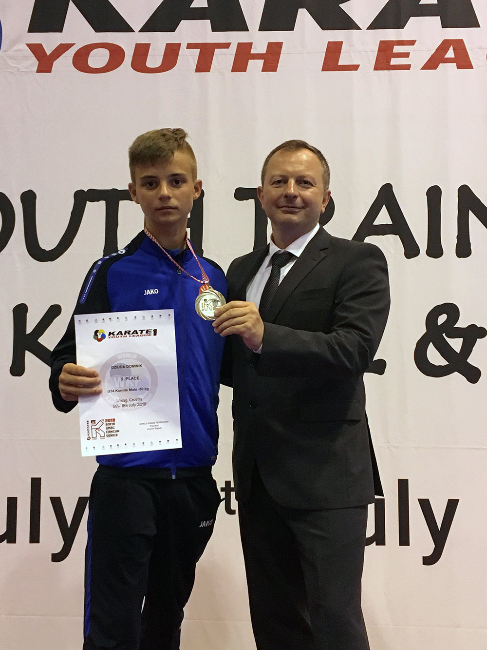 W dniach 6-8 lipca w Chorwackim Umag odbyły się zawody cyklu Youth League w Karate. Jest to cykl czterech turniejów dla młodzieży /młodzik 12-13 lat, kadet 14-15 lat, junior 16-17 lat/ organizowanych corocznie przez World Karate Federation. W Chorwacji wystartowało aż 1947 zawodników z 75 państw. W tej silnej konkurencji świetnie spisał się zawodnik Olimpu Łódź Dominik Dziuda, który wywalczył srebrny medal w konkurencji kumite młodzików waga – 50 kg /47 zawodników z 24 państw/.