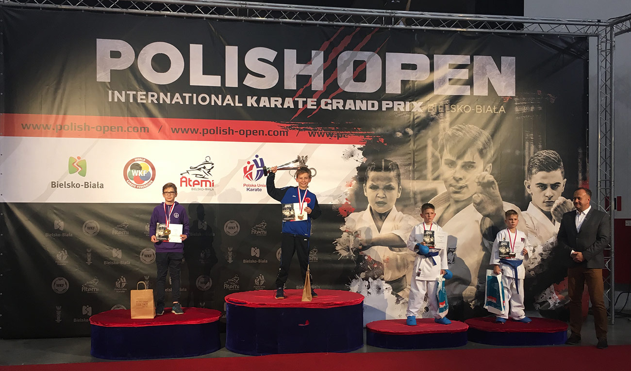 W dniach 6-7 października w odbyły się zawody Polish Open Bielsko Biała 2018. Jest to zdecydowanie największa Polska impreza, w tym roku wystartowało aż 1602 zawodników z 33 państw z 211 Klubów. Wracamy zadowoleni choć cele jakie sobie stawialiśmy przed turniejem były znacznie większe. Olimp Łódź zdobywając dwa złote medale uplasował się na 20 miejscu /na 211 klubów/ co daje 3 miejsce wśród Polskich Klubów. Złote medale wywalczyli Dominik Dziuda w kategorii U14 – 50 kg i Przemysław Kołodziejczak w kategorii U12 – 40 kg.
