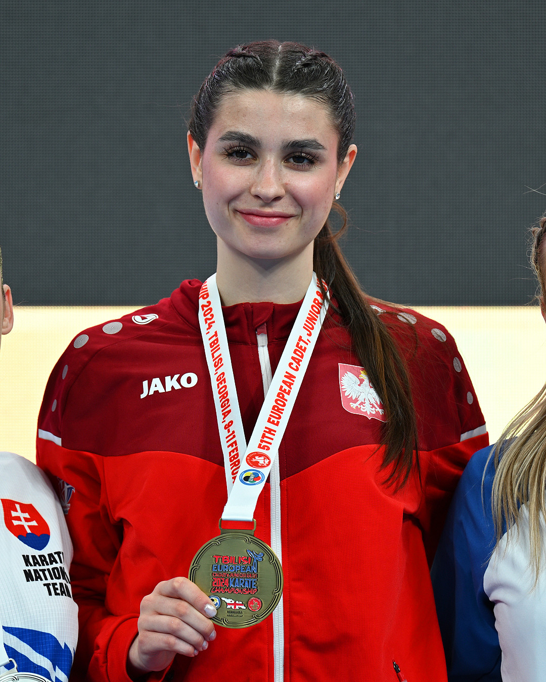 W finale który rozgrywany był następnego dnia Kseniya Dronchanka zmierzyła się ze świetną Niną Kvaśnicova ze Słowacji. Początek walki znów rewelacyjny, po początkowym badaniu przeciwnika Kseniya przechodzi do ataku i zdobywa przewagę dwóch punktów, po kilku sekundach robi się już 3 do 0 dla naszej zawodniczki. Końcówka walki to jednak prawdziwy dreszczowiec. Na początek Słowaczka odrabia 2 punkty a na 10 sekund przed końcem robi się 3 do 3. Kseniya ma jednak przewagę senshu /bo jako pierwsza zdobywała punkty/, mądrze broni swojej przewagi i nie daje sobie wyszarpać zwycięstwa i zostaje Mistrzynią Europy 2024.