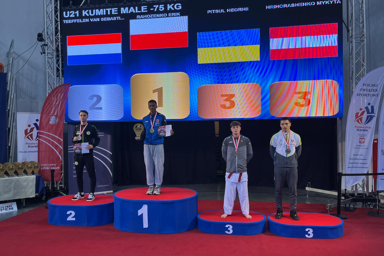 Wróciliśmy zadowoleni. Na najwyższym stopniu podium stanął Erik Rahozenko w kategorii U21 –75 kg. Nie było łatwo, bo na swojej drodze miał wielu bardzo mocnych przeciwników. W pierwszej rundzie wygrał z Artemem Tarasenką (UKR) 5:1. Następnie pokonał Jana Fierka (POL) 7:0. W ćwierćfinale zwyciężył 1:0 z Oleksandrem Kozachokiem (UKR). Półfinał to triumf nad utytułowanym Heorhiim Pitsulem (UKR) 3:0. W finale zmierzył się z Sebastiaanem van Teeffelenem (NED) i wygrał 5:2. Erik pokazuje, że jest jednym z najlepszych zawodników kategorii –75 kg młodego pokolenia.