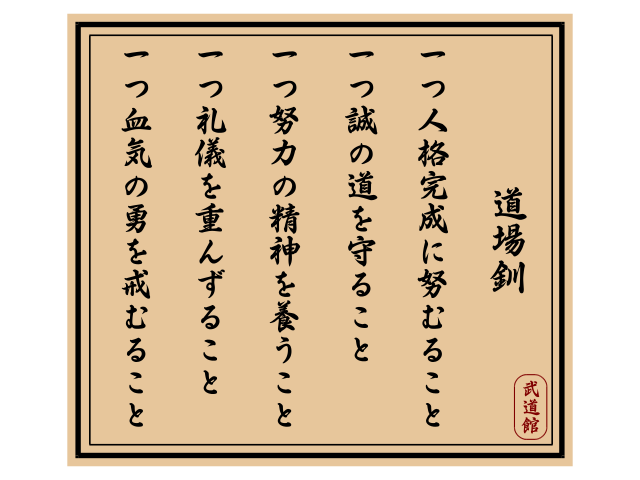 Hitotsu! Jinkaku kansei-ni tsutomuru koto!